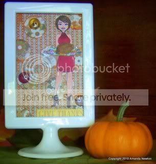 So here is the challenge. It is a shape challenge. You need to use circles! I used cirlces and buttons and the thanksgiving holiday girl! I LOVE her! (If only I looked like her!)